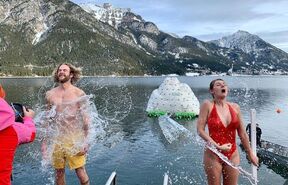 In der Kategorie „Sport” springen die Schwimmer von einem drei Meter hohen Steg in den Achensee, schwimmen 25 Meter zum Eisberg, erklimmen diesen und läuten die Silvesterglocke, bevor sie zurück zum Steg schwimmen.
