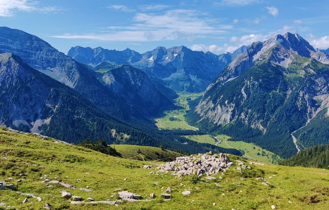Eine alternative Route zum Kompar führt vom Parkplatz Hagelhütten am Großen Ahornboden über die Hasentalalm.