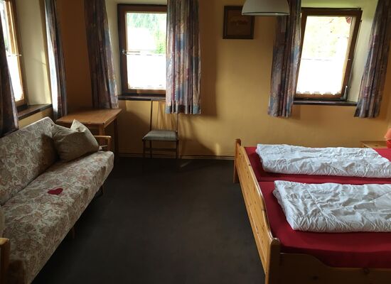 Ferienhaus für Selbstversorger. Komplett eingerichtet für 10 Personen.Mit Stube (Kachelofen ),Küche komplett eingerichtet,Holzofen,E-Herd mit Zeranfeld,Backofen.Kafeemaschine,Microwelle,Tooster.....Gemeinschaftsraum mit Fernseher,Kicker,Dart,Sitzecke,Bar,Kühlschrank und Schwedenofen. Bad mit zwei Duschen,WCund Abstellraum. im ersten Stock befinden sich die 7 Schlafzimmer. alle mit Fenster, Waschbecken, Infrarot-Bildheizung.Bettwäsche.. Bettbezüge müssen selber mitgebracht werden... !!! zwei WC