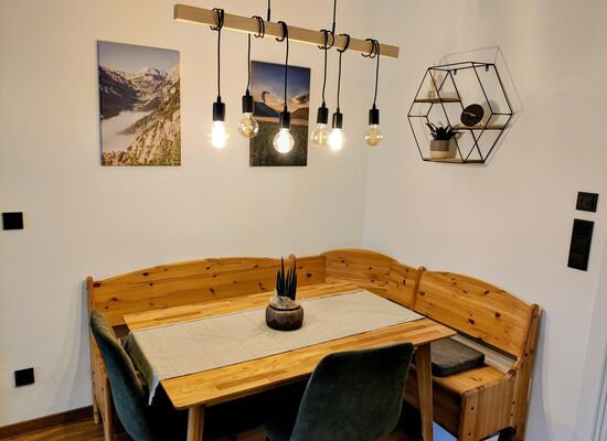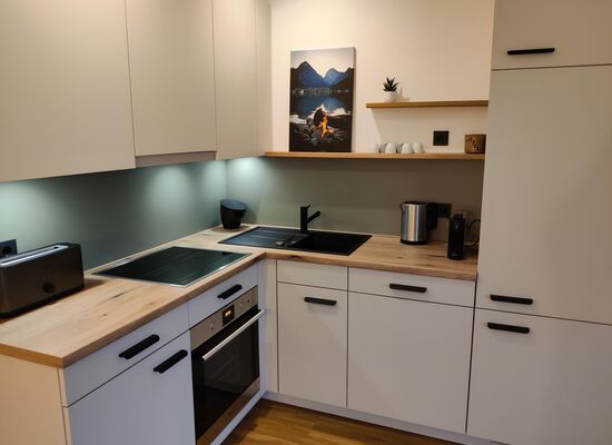 Moderne Küche: Bereiten Sie köstliche Mahlzeiten in der voll ausgestatteten, modernen Küche zu. Probieren Sie Ihre Lieblingsgerichte oder versuchen Sie sich an österreichischen Rezepten mit regionalen Zutaten.