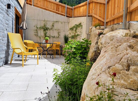 Private Terrasse: Betreten Sie Ihre private Terrasse und genießen Sie Ihren Morgenkaffee mit atemberaubender Aussicht auf das umliegende Bergpanorama.