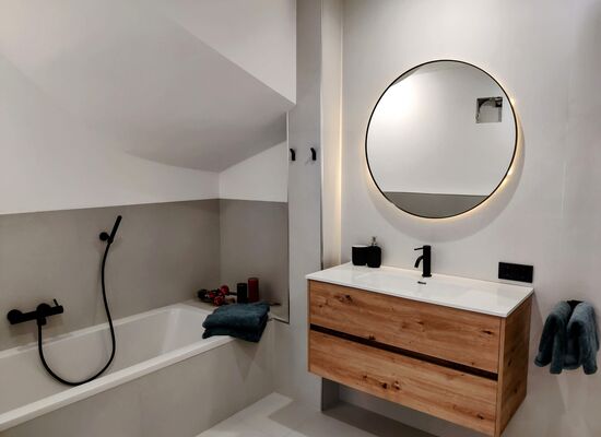 Badewanne: Nach einem Tag voller Wandern, Skifahren oder Erkunden können Sie sich im Badezimmer mit einer gemütlichen Badewanne entspannen.