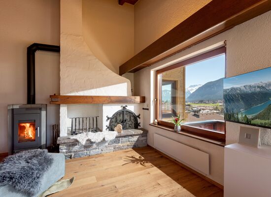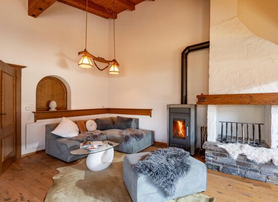 Ein gemütlicher Kamin im Wohnbereich sorgt für wohlige Wärme und schafft eine behagliche Atmosphäre.