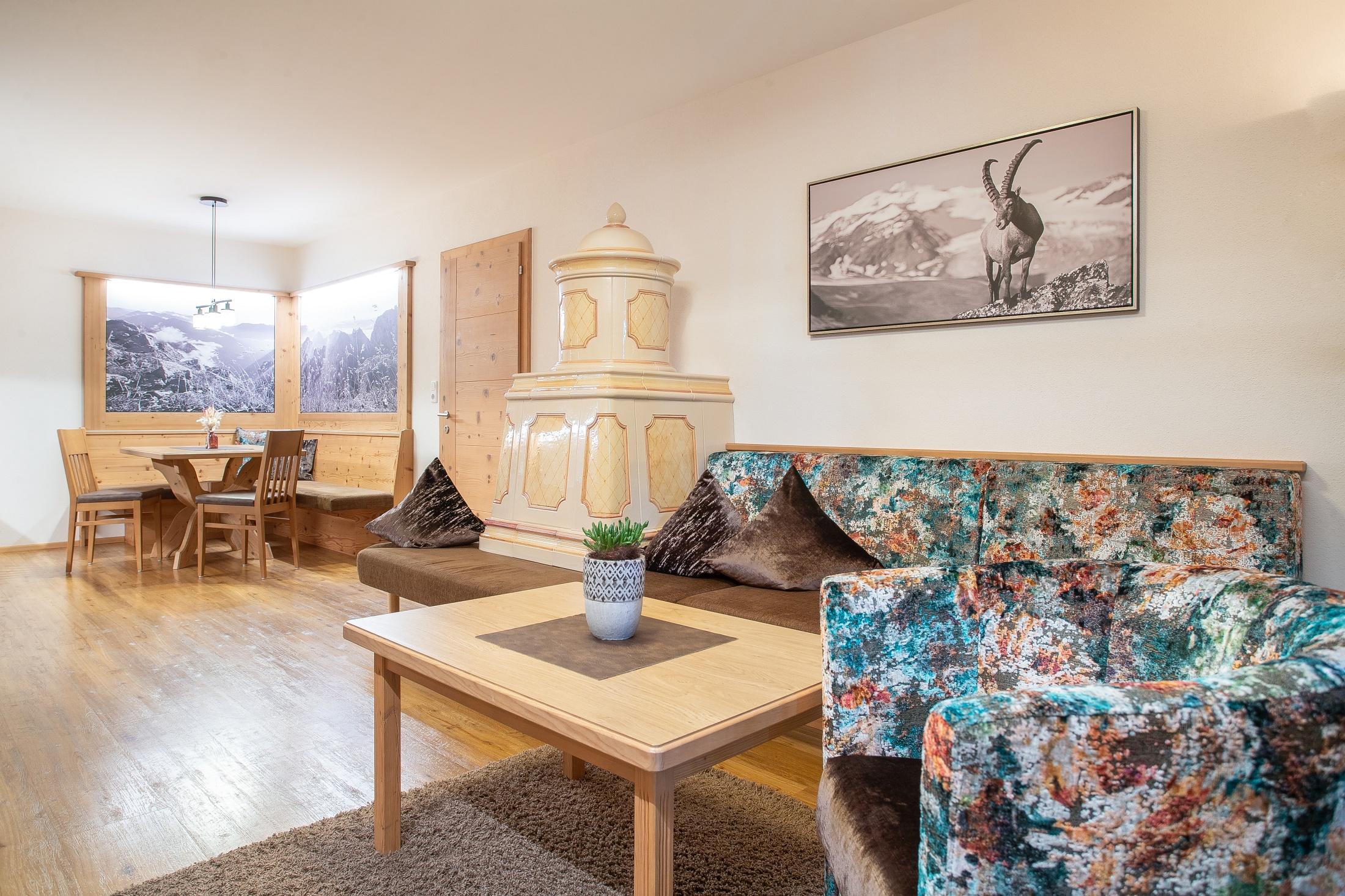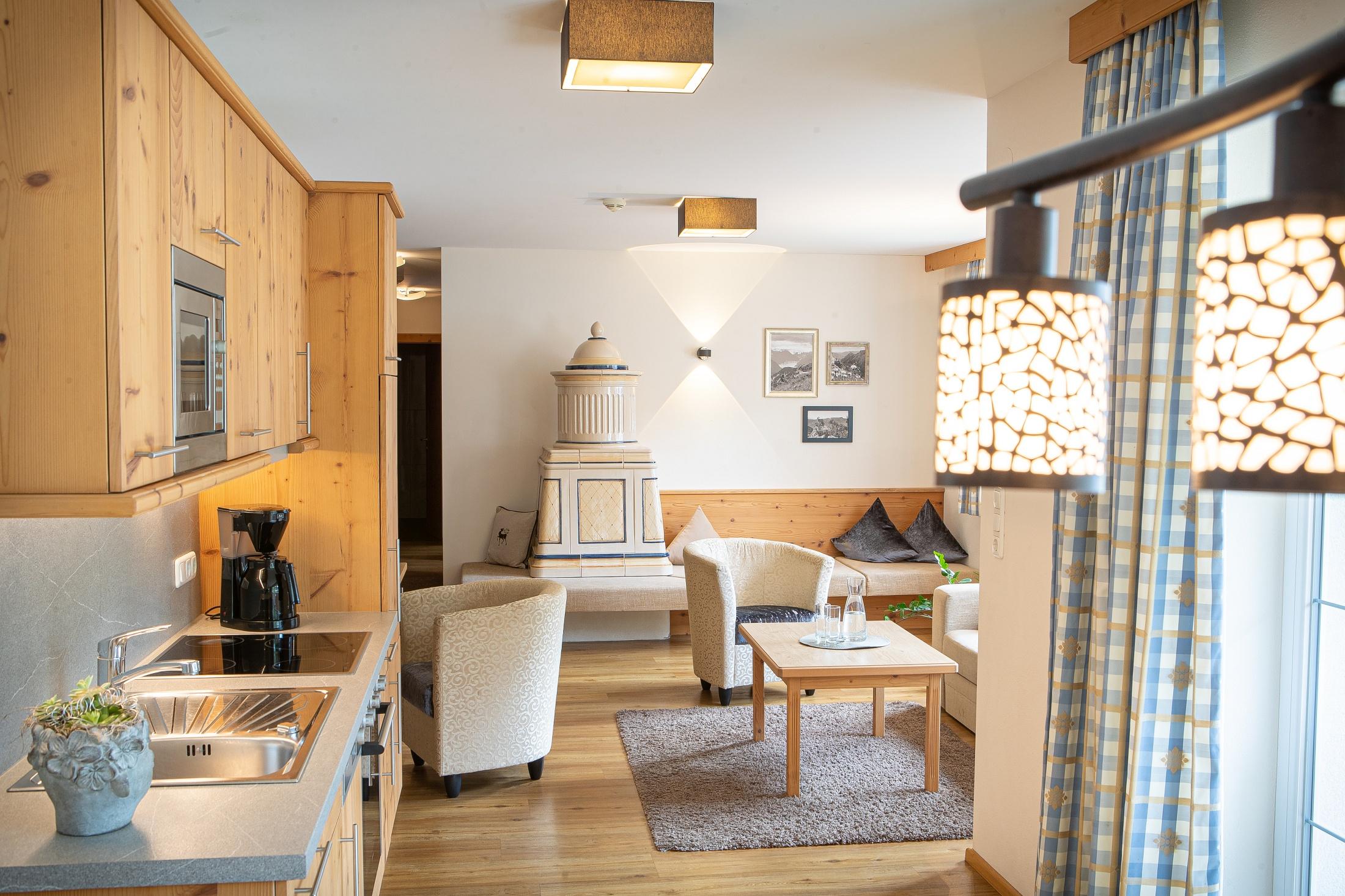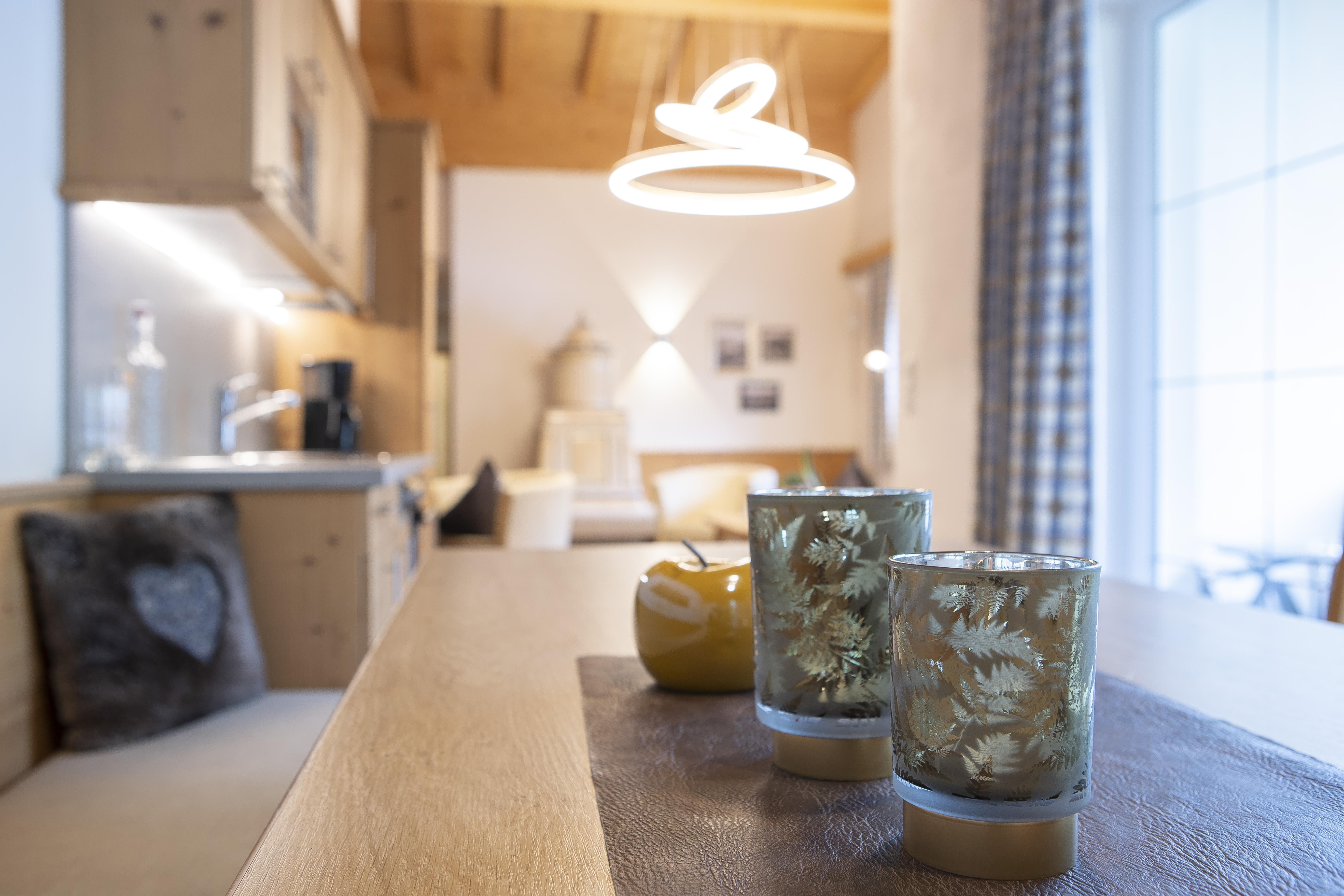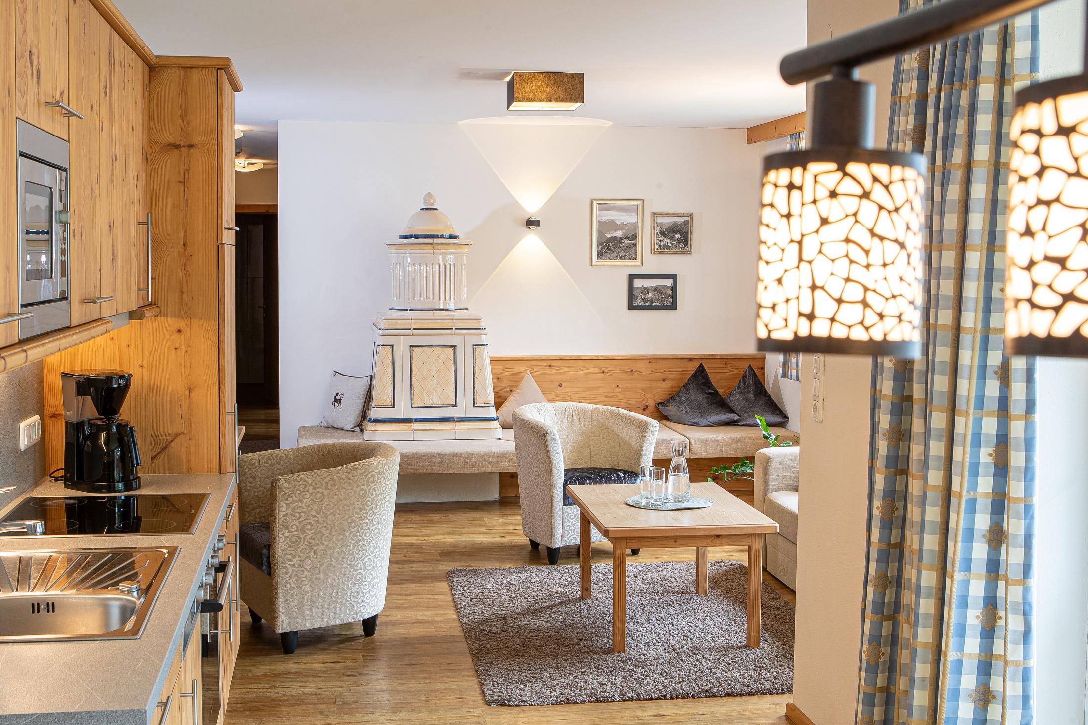 The luxurious apartments and the two rooms are well above average and furnished in a high-quality Alpine style.