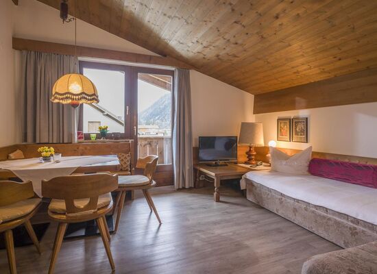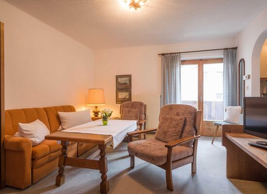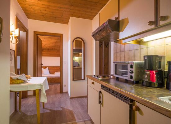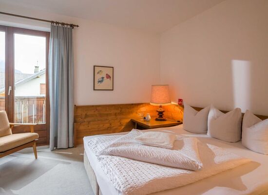 Charming landscapes and mountains, tastefully decorated house, solid furnishings! A feel-good holiday in a cozy house, where personal contact is maintained and individuality is a matter of course. Comfortable apartments with bath or shower, separate WC, balcony or terrace, telephone and satellite TV, and kitchenette. All apartments with a separate living-sleeping area, bakery service in the morning. In summer by the lake and in winter close to the lift. Direct access to the cross-country ski trails. Ski bus stop. Cozy café in the house.