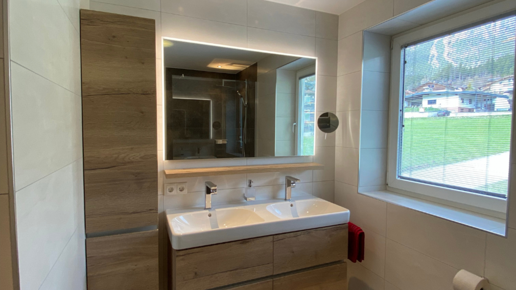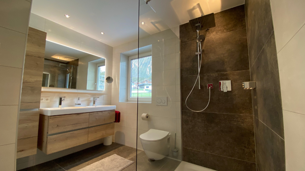 The guests feel very comfortable in our house. Each house has its own wellness area with an infrared sauna with its own shower and Sink. Apart from that, every chalat has its own second, freshly renovated bath with a double-sink and rainshower. The fire place in the living room provides a cozy warmth. We both have our own lawn and a terrace with garden furniture, so our guests can really enjoy their privacy on vacation. 8 E-Bikes are availaible to our guests free of charge for both Chalets in the specially equipped bike-garage. For your safety you will also find helmets, locks, backpacks and maps.